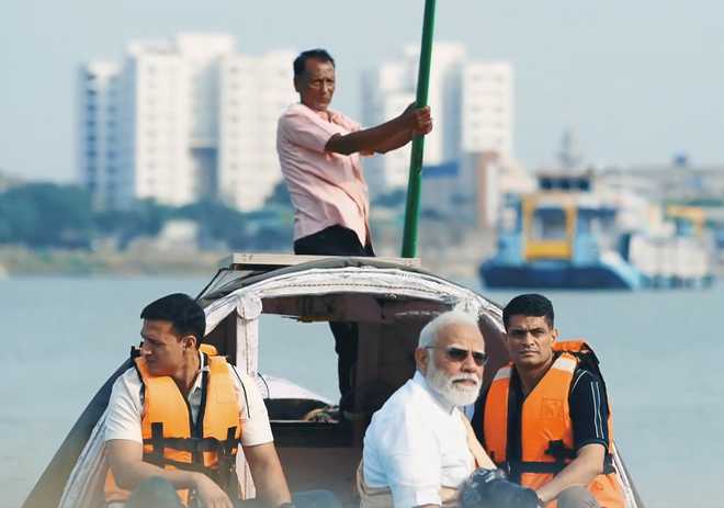 मोदी ने की हुगली नदी में नाव की सवारी और फोटोग्राफी